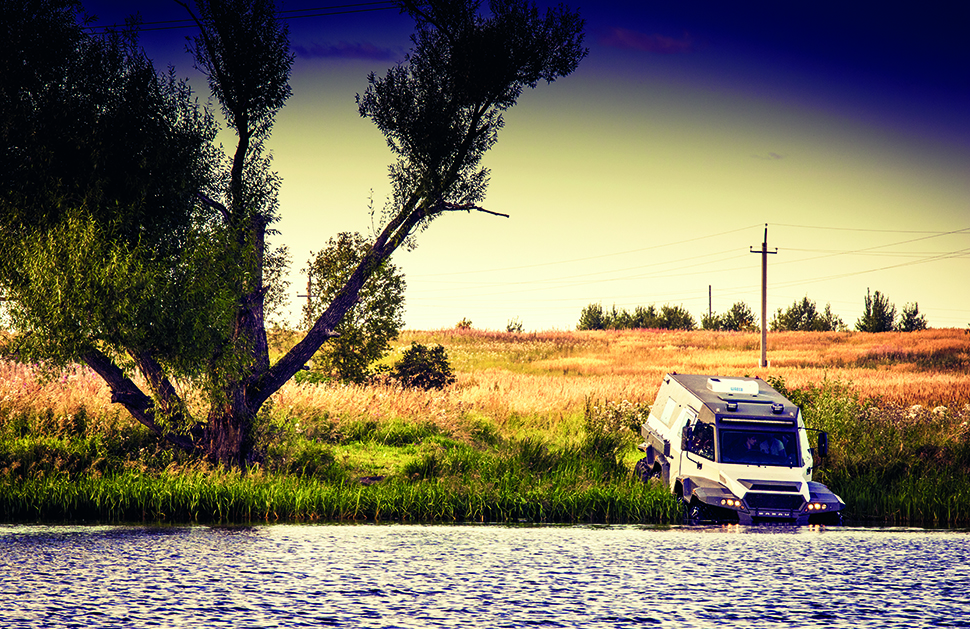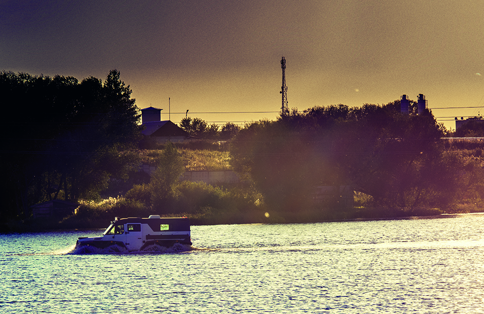 Vladimir看中的一段河流水勢並非太凶,卻也相當湍急,而且河床非常深。當我把車開到河邊,正值日落最美麗的黃金一小時,河上波光和漁夫盡皆染上一片醉人金光,不過本來與世無爭的漁夫這時已因為一輛碩大且來意不善的汽車而擾攘不安。「我們打算從這裏過河。」翻譯Dmitri說時表情木然,彷彿只是純粹傳達事不關己的內容。他們曾經跟我保證這個重量幾有五噸的大塊頭能夠浮在水中,但我此刻只能想及一旦失手,豈不在一群魚夫面前丟臉。