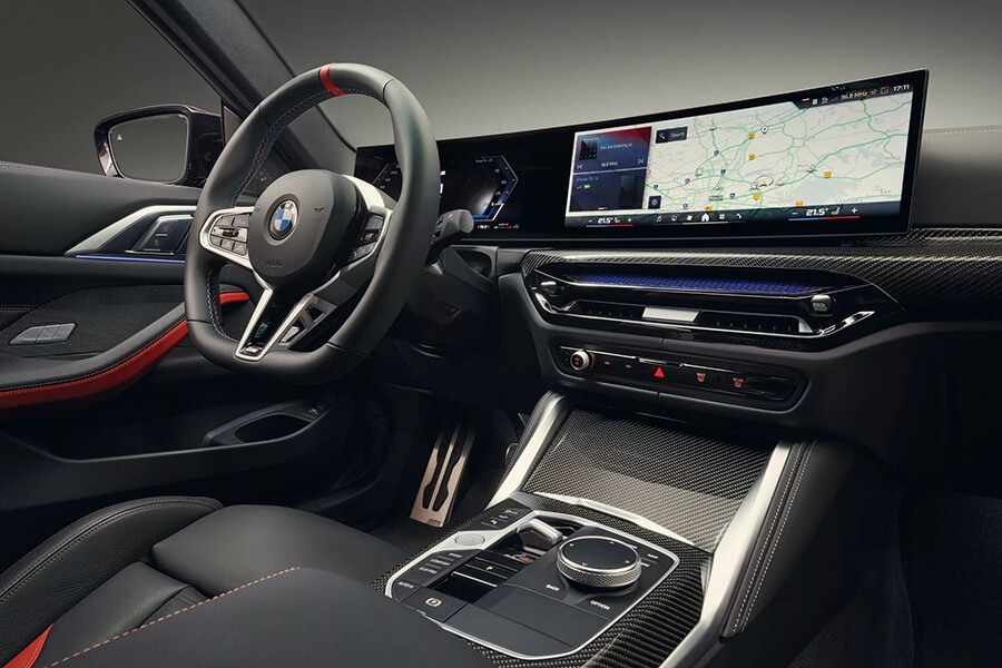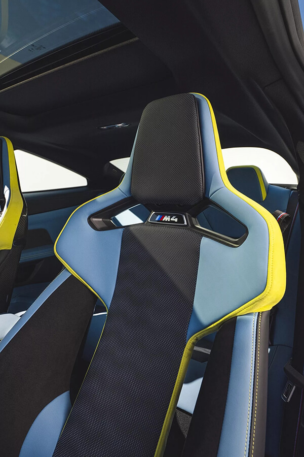 車內部分除與4系列一同換上iDrive 8.5系統外,改良過後的方向排有著平底輪廓、與特殊的 M Alcantara 表面。而包含抬頭顯示及導航功能的Live Cockpit Professional 系統也成為 M4 的標準配備。同時內飾多了一種淺色鋁質選項、輪圈亦有類似色澤的淺色全銀塗裝,看起來確實挺不賴嘛。而若您想要,還能夠選配M碳纖維桶椅,可再減輕9.6公斤之重。