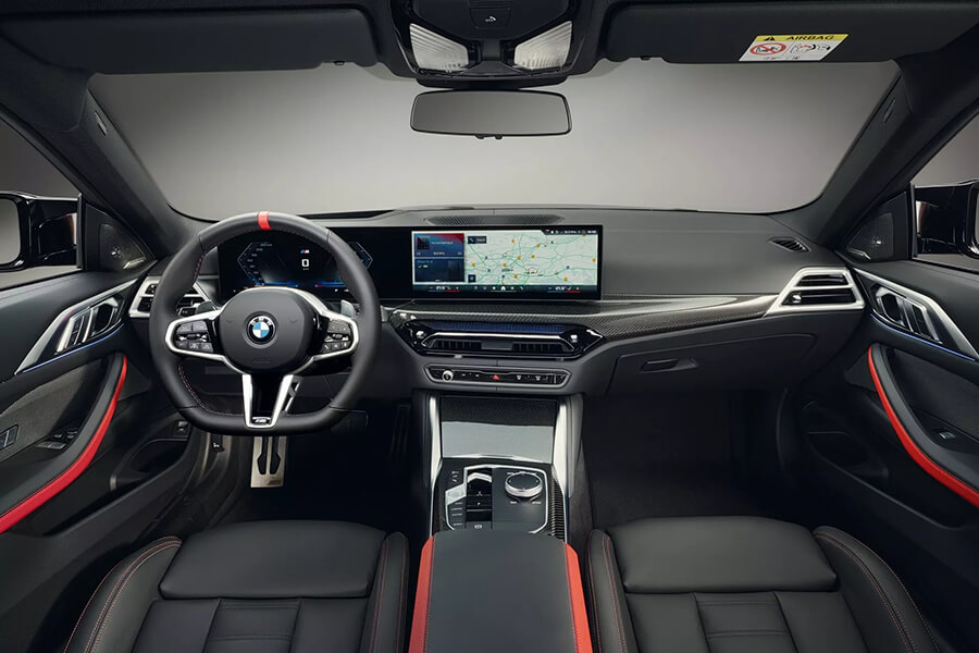 改款BMW 4在車艙內的風景現已採用「Crafted Clarity」玻璃點綴部分表面,塑造俐落外觀感受;儀表、座椅內裝以及方向盤皆已進行了重新設計,當然還有橫亙車艙的發光燈條…