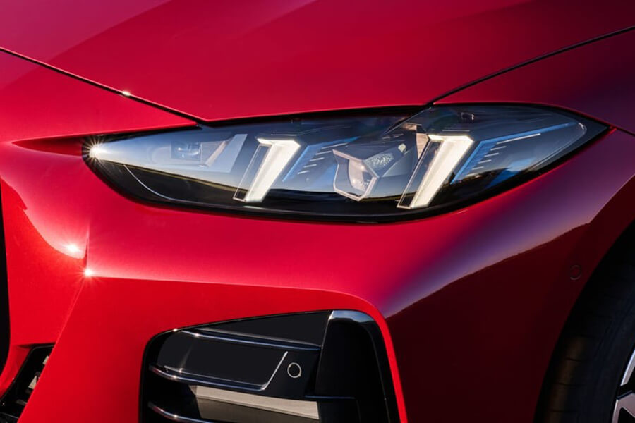 改款4系列與M4外觀上與舊款最明顯的差別無非就是在前後兩端都換上新的車燈組件,頭燈部分將箭矢型的日行燈兼作方向燈之用外,同時也將遠、近光燈整合在同一個LED照明模組當中;在車尾部分,M4新增注入雷射技術的尾燈,視覺效果令人嘖嘖稱奇:是啦,它也就是源自M4 CSL上的設計。而至於4 系列準車主亦可從諸多選配項目中,找到增添雷射尾燈的對應欄位…。
