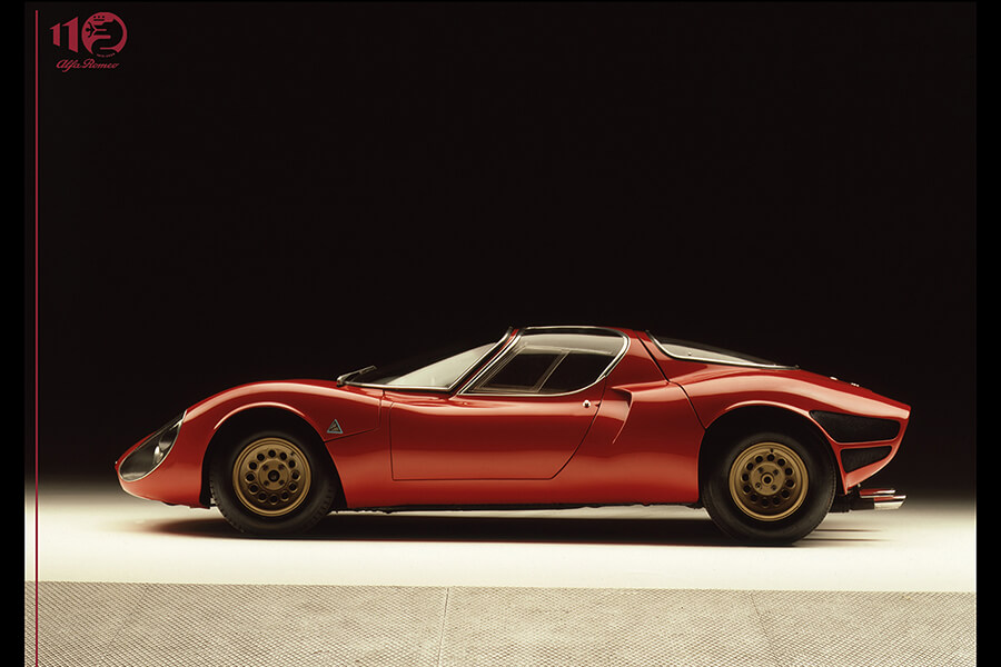 中置引擎的33 Stradale以作品說話,成為公認有史以來最美的Alfa,進而成為有史以來最美的汽車之一。Tipo 33賽車也有街車版(事實上Stradale在義大利文中正有此意思),在1967年至1969年間只生產了18部。