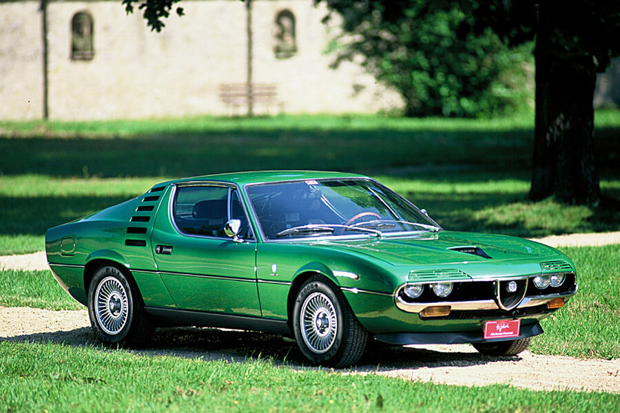 終極70年代的Alfa —— 2+2的Montreal由Bertone的Marcello Gandini設計,採用來自33 Stradale的2.6公升V8引擎。它的新車當時比保時捷911更加貴,但你會很樂意為其獨特外形揮灑金錢。