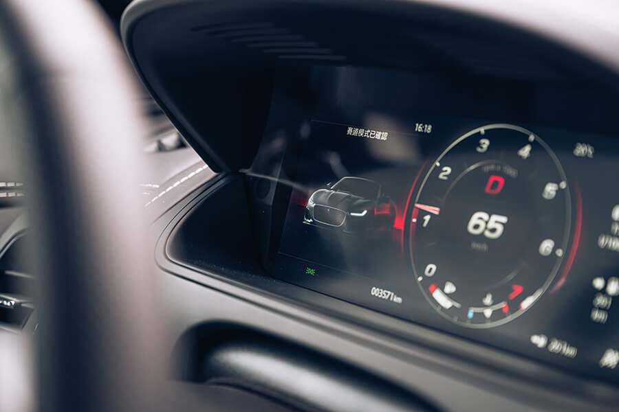 在我跟前正運轉著的5.0升AJ-V8引擎中氣十足,一入檔就能感受到牽動蠕行的氣力不一般,右腳踩踏引起的動力攀升配合這具8速變速箱,就如同蓋世氣力遇上了一雙巧手,575匹、700Nm的輸出潛能,在逐步向動力高峰攀登的過程中,亦有細膩如綾羅綢緞的運轉品質。而早些時候還感到不太習慣的就座位置,也在略為帶起速度節奏後,感受到其中的妙處:僅位在後軸前方一點點的著坐點,讓駕駛與四顆20吋胎圈彷彿位處同一平面,在或轉向、或行經路面高低起伏之間都能感受到任何一點細微的姿態變化。調校得當的避震系統更進一步詮釋了這一點,進階的避震搭上這彈簧的疏密比,在一般駕駛狀態、甚至鬆開油門的滑行感皆呈現清晰富彈勁;駛經一些不小的路面顛簸時,一開始或許你跟我一樣會擔心車輛懸吊、或是自己的臀部會慘遭蹂躪,事實上它們的做動行程與吸震能力都比起想像中好,在如實給予來自路面的衝擊力大小、方向等回饋之餘,依然保有它柔韌舒適的一面。