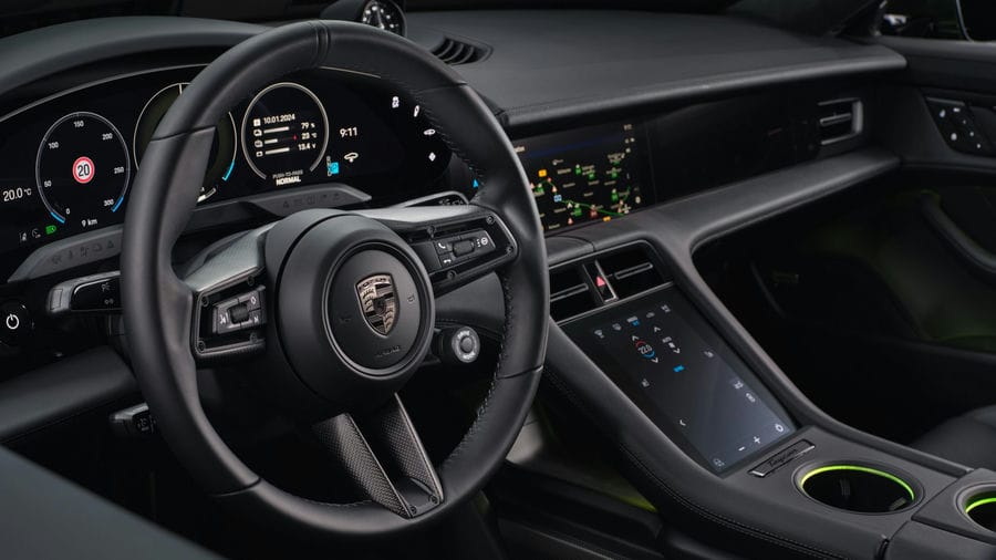 儀錶板、中央螢幕與選配的乘客資訊娛樂顯示螢幕都有更多功能,並針對使用者介面進行升級。方向盤上的駕馭模式切換器新增列為標配,而配備跑車計時套件與高性能升級電池的 Taycan 車型在駕馭模式切換器上還增加獨特的 Push-to-Pass 按鈕。