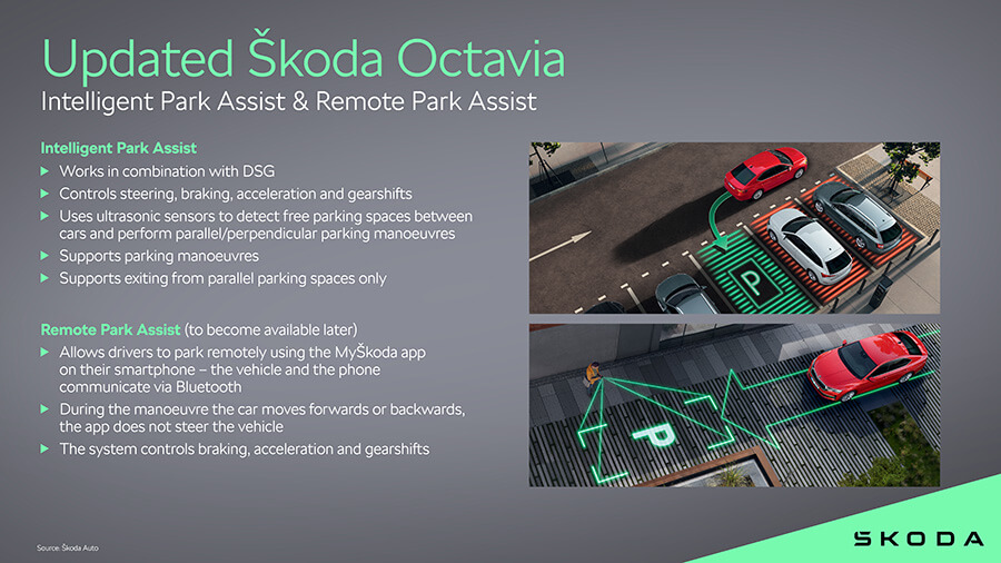 安全部分也一直是Octavia的優勢之一,除了既有的10氣囊以及駕駛輔助等配備外,這回廠方也針對駕駛人偵測、疲勞瞌睡警示兩項系統提升作動與偵測反應能力,更進一步區分短暫分心與實際一疲勞出現的長時間注意力不集中,並做出相對應的提醒。另外自動停車功能也進步到具備自動停車或駛離的能力,後續也會加入遙控停車功能,駕駛人可在車外(離車4米內)透過手機遙控車輛。