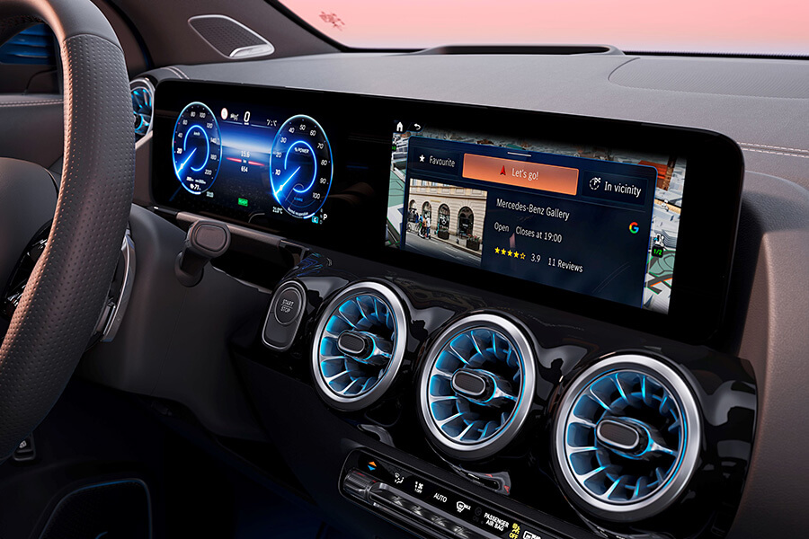 全新 EQB 有了 Mercedes-Benz 的豪華科技挹注,與 EQA 同樣升級搭載 MBUX 2.0 多媒體系統,搭配無線智慧型手機整合系統及手機無線充電裝置,視覺與實用性皆獲得顯著提升;更多的升級內容則包含全景式電動天窗及 Burmester® 環場音響系統。全新 EQB亦標準配備齊全的主、被動安全輔助科技,更優化部分輔助功能,例如車道維持輔助改以方向盤轉動修正行駛路徑,方向盤握環升級為電容式觸碰感應,可以觸摸方式喚醒方向盤手持偵測,提供更人性化的智慧駕駛使用感受,駕駛儀表同時提供車道虛擬化輔助顯示模式,同步提升安全與舒適性。