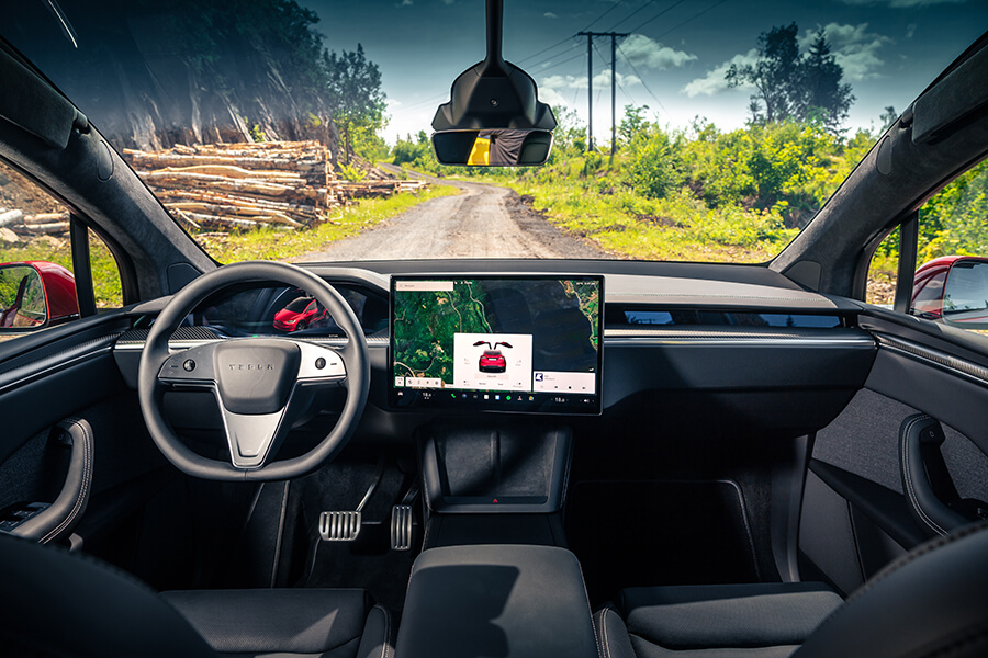何況Model X放諸今天猶不失瀟灑有型,老鷹展翅車門簡直百看不厭,空間尺寸又足夠造出一個非常怡人的乘坐環境。一直向上伸至你額頭後邊的擋風玻璃,便使得駕駛席的氣氛格外開闊,單一17吋觸控螢幕只要用慣了就會十分好用。車廂裝置和裝潢雖然比蓮花節儉(似乎簡單到有點令人茫然),而且肯定有點形態先於功能的傾向,但大體上仍然造就了一個令人興奮的有趣空間。此外我們有必要指出,這部Model X並沒有其他特斯拉以前所見的品質和組裝問題。