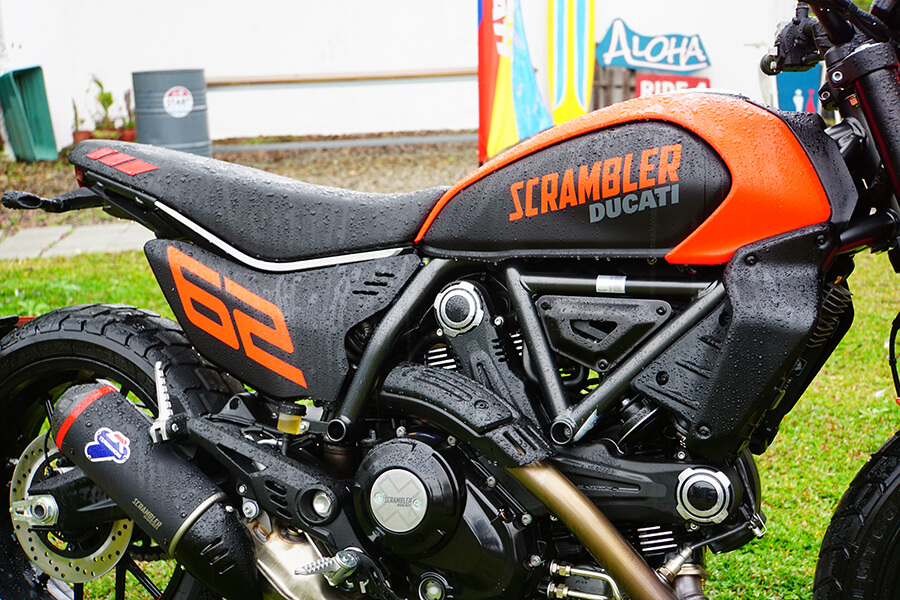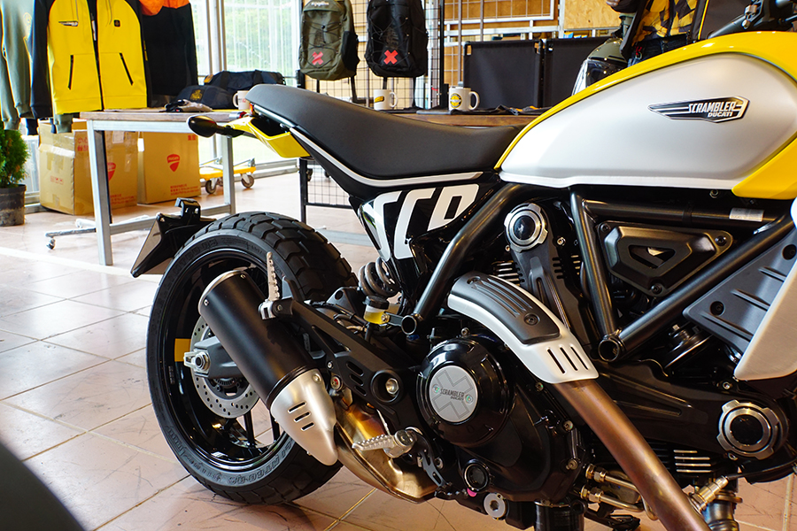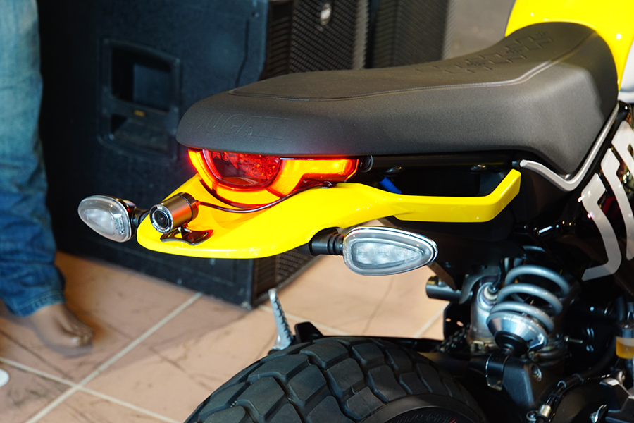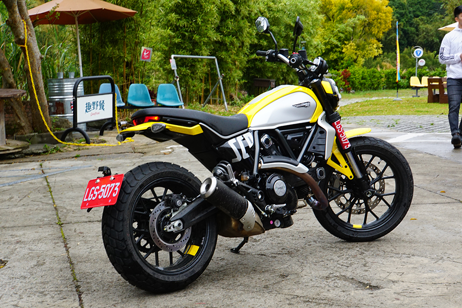 回到外型設計,新款Scrambler除了外型上更加緊緻、運用更多的平面化線條,值得注意的是排氣管走向一改過去的側邊二合一設計,改由前缸頭段上揚側繞至樞軸附近會合的作法,此舉據說是讓右腿免於高熱摧殘的關鍵之處…至於你問我有感覺嗎?小編試乘當日在短短的十來分鐘的確是沒感覺到明顯熱氣,但是不是單純因為今天氣溫實在太冷?或許到時候再次拉出來試車就知道…。