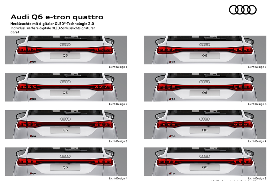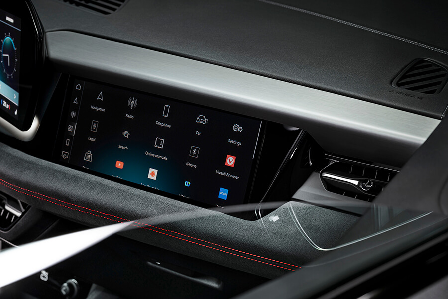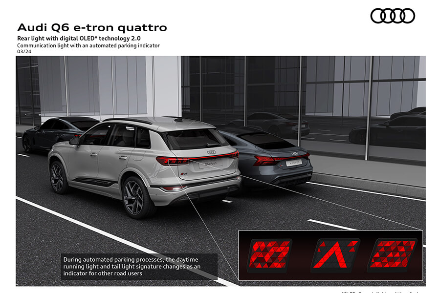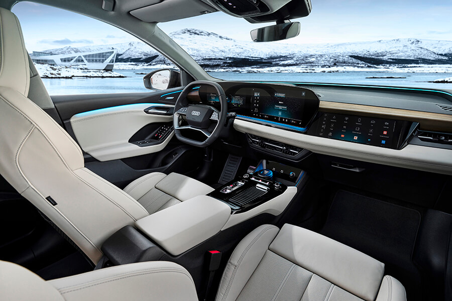 Q6 e-tron車身尺碼為4771mm,軸距則有2899mm,差不多與目前主流中型電動SUV如EQE、Macan相仿,但比較傳統的車體造型對於空間表現預期會有不錯的表現,例如後行李廂空間便有524公升,車頭行李艙也有64公升;內裝部分就與先前預告的相差無幾,最高將可以提供11.9吋儀表、14.5吋中控螢幕與10.9吋副駕駛三螢幕的數位座艙組合,而其主機系統基於Android Auto系統開發,因此在第三方應用程式與線上聯網更新的能力也會有豐富的使用能力,同時系統也針對語音聲控做出加強,廠方表示語音助理目前可聽懂800個以上的語音指令。
