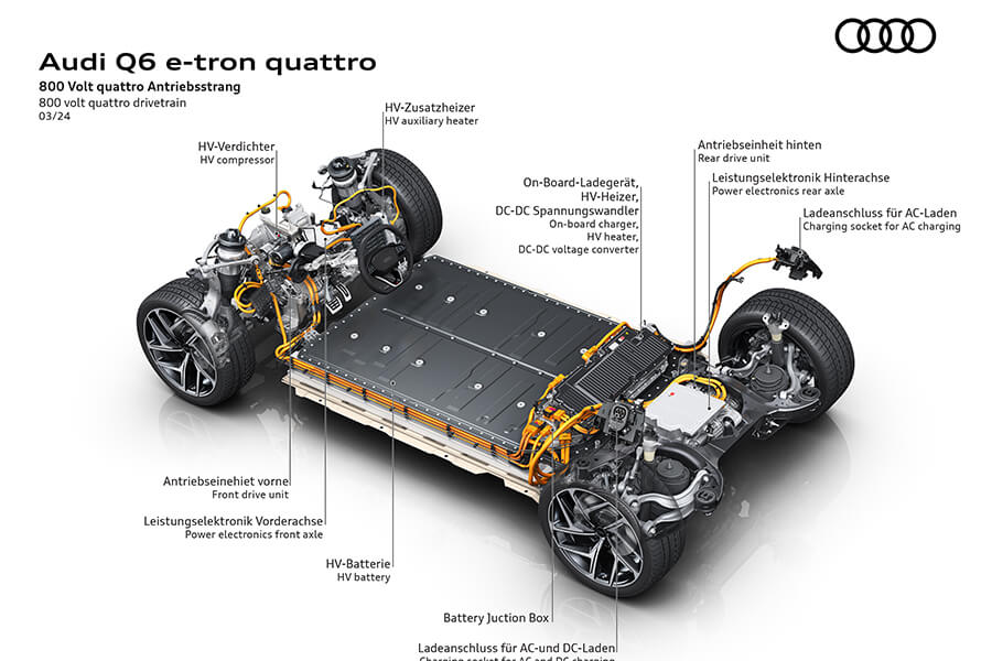 那麼Q6 e-tron的輸出與里程實力如何呢?很有趣的是廠方還是選擇感應馬達與永磁馬達前後搭配的雙馬達組合,維持與Q8相同的想法,而且包含SQ6也沒有採用雙永磁馬達的設定,明確感受到廠方在效率與成本上的精準拿捏,當然前軸選用感應馬達也是顧及整體經濟效率,讓馬達再有需要時再行介入,就如同油車的quattro ultra四驅系統的設計思維相同。