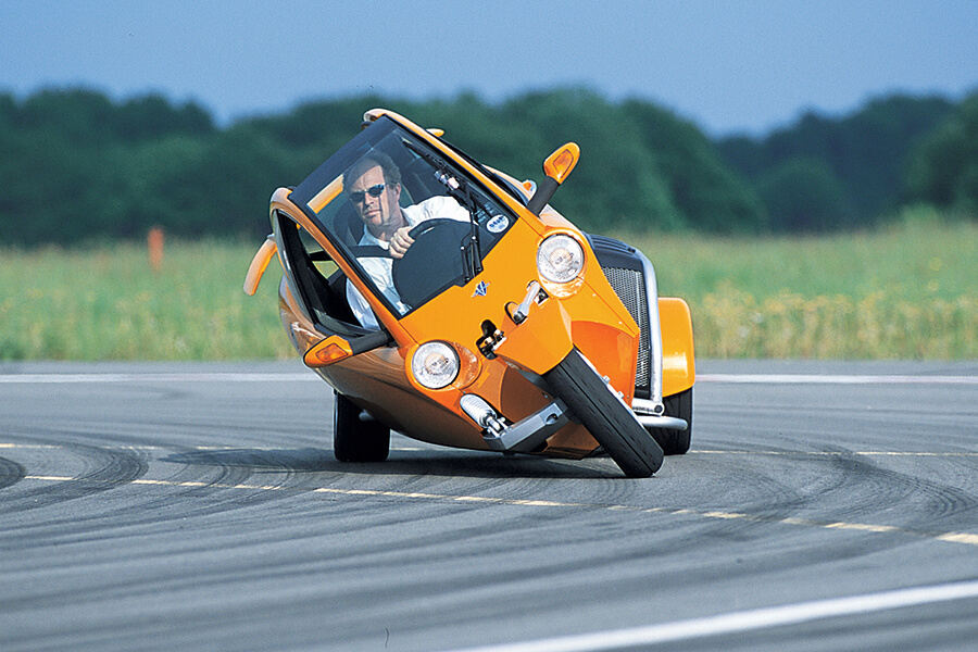 這是汽車,還是摩托車呢?不管身份是甚麼,荷蘭就是以這件荒唐卻十分迷人,拐彎時會傾側車身的作品加入都市運輸方案之爭,如今更以電氣動力取代汽油動力。車手自然扼守中路,後邊還有空位招呼一位勇氣可嘉的乘客。