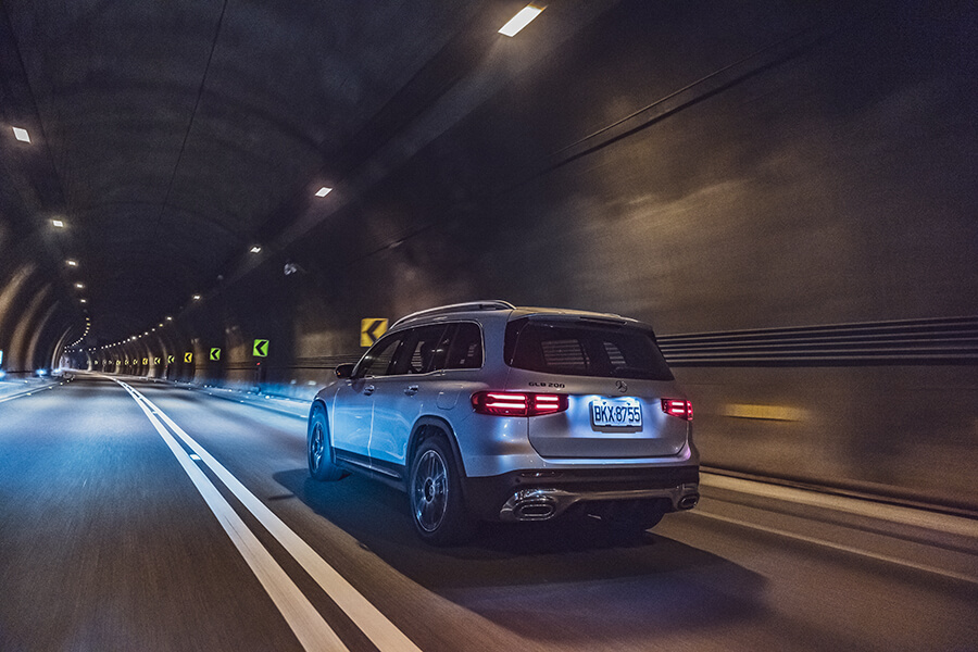 改款後的 GLB 在動力部分加入了 48V 輕油電系統,這套系統我輩已有多次的接觸經驗,相比搭配在大排氣量多缸車型上,我也發現這套輕油電系統在小排氣量四缸引擎上的輔助效果更加優異。除了在停等、滑行優先關閉引擎維持車輛電力達到經濟性與維持舒適車艙居住感,我認為最棒的進步就在於馬達的助推能力徹底補強低速扭力反應與消除變速箱的頓挫,讓 GLB 200 變得擁有非常順暢的動力反應,特別是馬達在起步提供的加速扭力,讓這具 1.3 升四缸渦輪引擎可在它擅長的工作領域徹底發揮,這樣油電並行合作的調整下,反倒開起來很有標準 2.0~2.4 升自然進氣引擎的協調與順暢感,呼應它擁有達 27.5 公斤米的扭力輸出,而且具備原廠以 WLTP 規範測試下取得 7.6-6.9 l/ 100km 的平均油耗表現,在 TG 慣常的北台灣破百公里試車路線裡, GLB 200 確實給我一種韌性十足的動力表現。