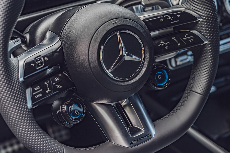 換上 Mercedes-AMG GLB 35 4MATIC ,當然那具由 AMG 部門親手特調的 2.0 升四缸渦輪引擎自然是底氣十足, 306 匹與 40.8 公斤米的輸出自然能帶來十分暢快的加速體感,配合馬達的小幅助堆也是有種畫龍點睛的秒處。在更順暢的加速曲線上還是保留有 AMG 車款特有衝刺爆發力與鏗鏘有力的排氣聲浪,而且僅需透過方向盤上的兩個快捷旋鈕就可以輕鬆切換,帶給駕駛人更好的即時操作感;另外像是智慧駕駛輔助系統也都整合在雙肋造型的 AMG 平把方向盤上,加上兩面 10.25 吋的數位儀錶與中控螢幕也都可由此控制,讓駕駛人有著最便利的使用環境,也正好合乎賓士對於手不離盤這項駕駛安全設計的重視。當然這套動力與四驅系統配上主動式可變懸吊,實際在操駕表現上也是能發揮出非常穩定與俐落的動態身手,同時也能營造一種輕鬆無壓的駕駛心情,確實讓我輩完整延續對於 GLB 的好印象,如果再算上它所提供的七人乘載機能與適切的車身尺碼,又讓 GLB 35 4MATIC 在扮演一項兼具性能與機能的豪華休旅這部分顯得更稱職不少。