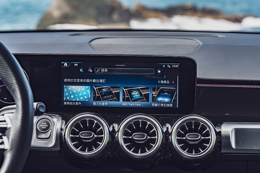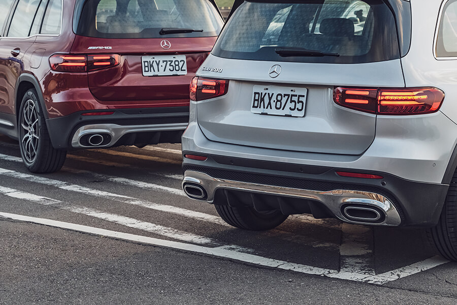 新的外觀修飾與細節讓 GLB 車系在質感有長足的進步,例如我們試駕的 GLB 200 現在就直接標配 AMG Line 外觀套件,配上新的細條尾燈還有橢圓形的排氣尾管,都帶來一些新的變化以及與市場車款有所不同的風味,特別是那套排氣管,我覺得設計師是不是位 3C 產品宅,像極了手機或車內的 Type-C 充電口吶。既然說到 3C ,那也不能忘記賓士一家目前在多媒體應用系統的努力進步, GLB 同樣是隨著先前 A、B-Class 等車的更新, MBUX 2.0 多媒體系統現在也開始支援 Google 即時資訊的功能,能夠與內建導航整合使用,車主就可以在查找一些景點或餐廳時得到更即時的訊息;另外在加入網路連線功能後,包含像是線上串流音樂或電臺這類的便利娛樂功能都大幅擴張,更能讓車上的 Burmester 音響發揮支援杜比全景聲的美妙歌喉。 Mercedes me 互聯服務也自然是新車一大應用科技,讓 GLB 能夠透過這些新科技的應用,更能在扮演它的居家角色之外,帶給車內乘客更多的豪華服務與享受。