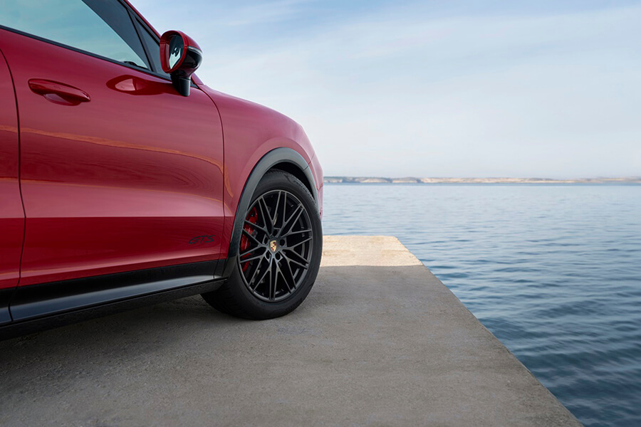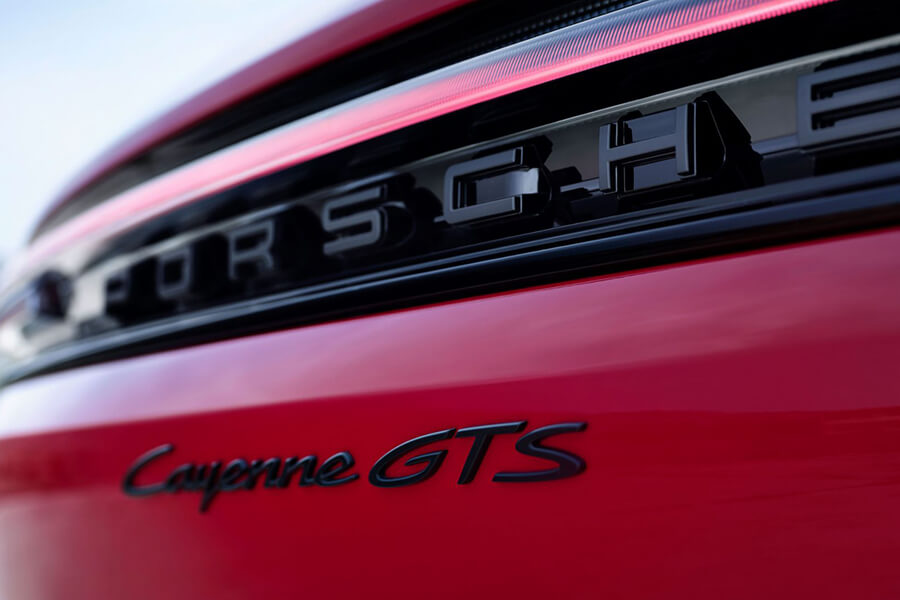 保時捷所有的GTS車型都因其獨特、運動風格的設計而頗具辨識度且備受車迷喜愛。GTS的獨特樣貌體現在全新Cayenne GTS Coupé車身側面和車尾的黑色「GTS」字樣、車頭加大的冷卻進氣孔、燻黑的頭燈和尾燈,以及紅色煞車卡鉗。車身外觀帶有經典的保時捷DNA的同時也不乏創新設計點綴。Sport Design套件內的側裙、車側飾板、側窗飾條和輪拱造型等皆以高亮澤黑色打造。在以往GTS車型上,部分車身組件會施以車身相同的顏色。跑車造型排氣尾管則由以往的黑色改為深銅色調。為了更加強調保時捷GTS車型特色,21吋RS Spyder輪圈也施以煤灰色(Anthracite grey)塗裝。
