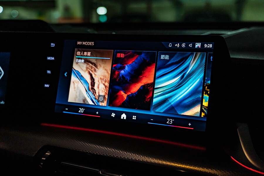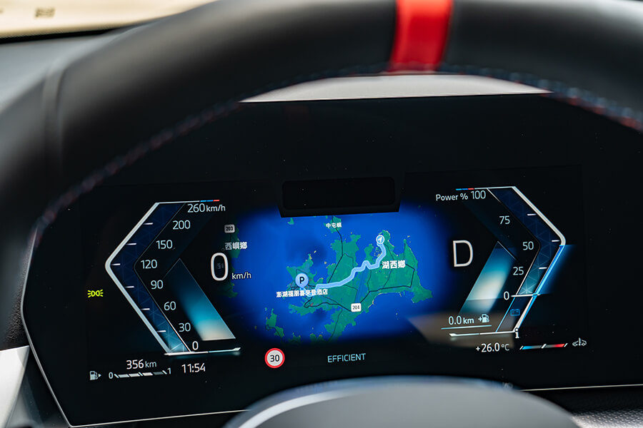 這兒的路面環境彷彿開放世界賽車遊戲地圖,市區、鋪面郊區道路與水泥、石板甚至未經鋪裝的砂石路面保持在一個相當平均的使用比例,20i M Sport帶來的懸吊表現特別在此顯得如魚得水,做動行程不僅相當樂於吸收路面起伏、回彈腳勁也帶來相當適切的支撐;拐進此地少有的一段刁鑽彎道,中間偏軟Q的行程初段讓20i在入彎時如預期中微微外擺,略低的著坐點配上紮實的底盤剛性,所感受到的不僅只是重心轉移、過彎時四顆輪胎順應車身姿態所產生各自不同的行程壓縮與胎面接地感,於此時此刻皆了然於心。也因此即便方向盤手感十足輕盈,坐在後方的你依然能感覺氣定神閒、大局在握。內裝也是一大重點,儀表與觸控螢幕同樣採一氣呵成的曲面式、手邊的懸浮中央鞍座供你差遣引擎啟閉、檔位、警示燈等功能,下方空間則騰出杯架、USB-C插孔及置物空間。OS9作業系統乍看差異不大,實則以更多圖示、直覺的操作方向與排列,合乎人性地改善操作體驗,更可透過商店,下載合乎喜好的各式第三方app;而能依照路線 / 紅綠燈數量安排的多種路線方案、加上AR導航功能的助拳下,OS9的導航功能性簡直周到得沒話說,不過地圖相較OS8.5增加更多餐廳、地標這一點倒是比較感受不出來,但這也許是TG遊歷澎湖的方式與口味,確實迥異於尋