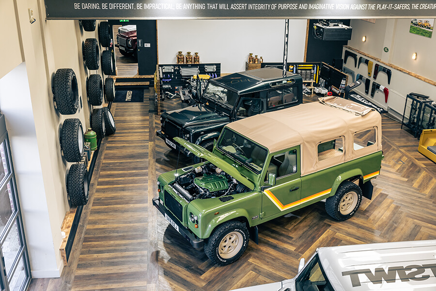 Defender退出江湖之際,也成為了Twisted這類改裝商的熱門改裝對象,所以我們下一程會去北約克郡會一會Twisted的老闆Charles Fawcett。這位仁兄當年一聽到Land Rover宣佈Defender退役,便買下了最後出廠的二百部Defender,以確保Twisted未來幾年生意不絕。
