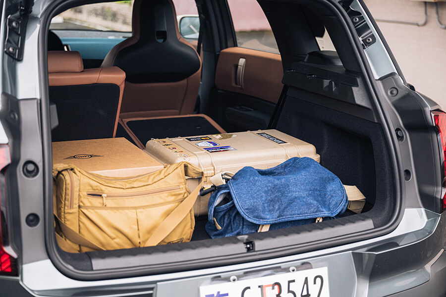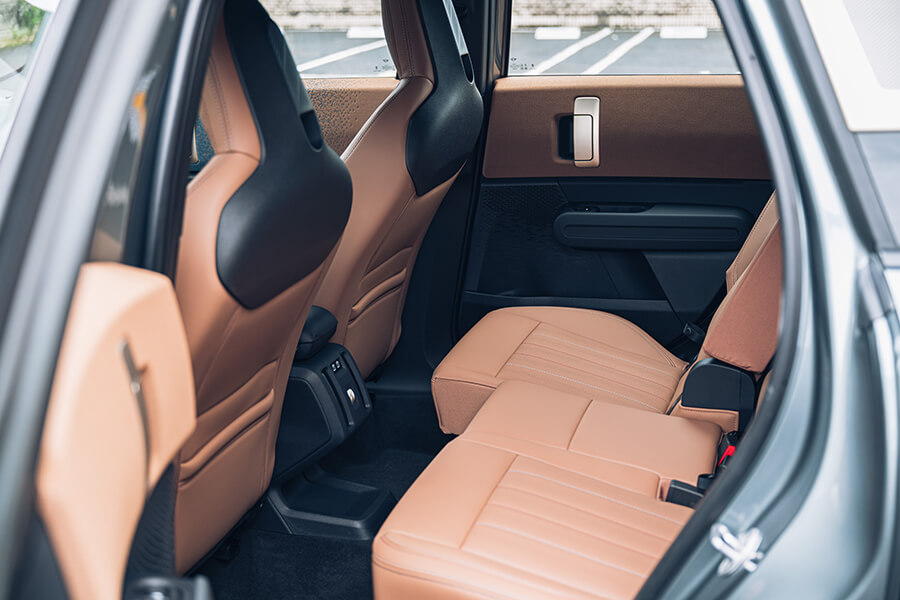 我環顧四周,新底盤與伴隨而來的大空間好似在這喊叫都會產生回音。而除了自身的橫向增長外,簡潔的織物內飾鋪陳亦是營造空間感的有力功臣。傾倒前的車廂容量依然維持在450L,後座空間倒迎來大成長:坐姿自然、空間充盈不說,4/2/4收折的後座椅同樣可以前後滑移,配上干邑色的Vescin皮質座椅襯托,車室兩翼的棕/藍漸層織布內飾強化了置身其中時的恬靜居家感。