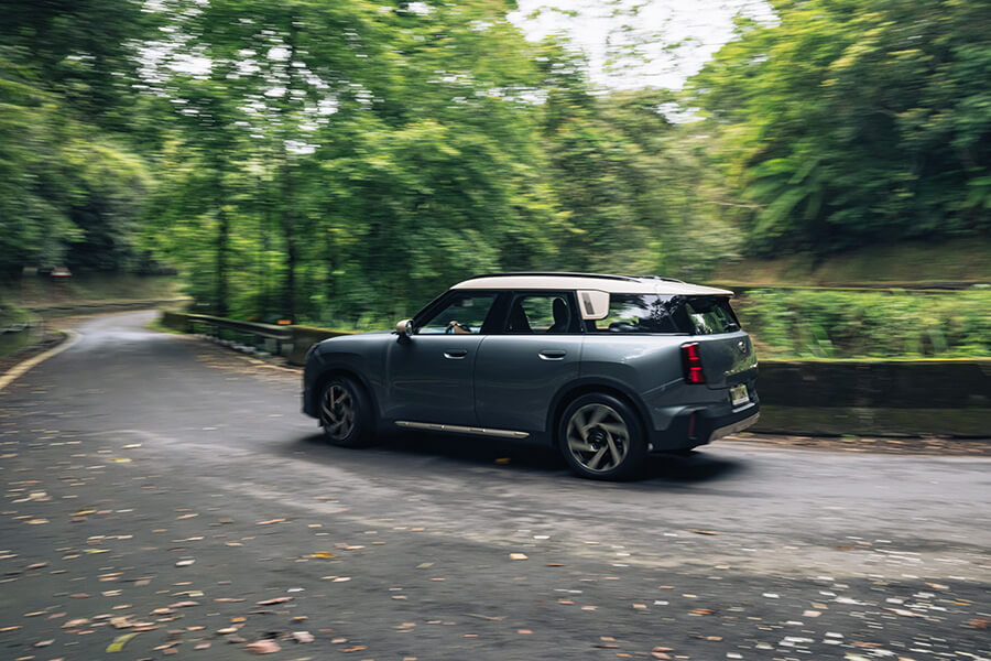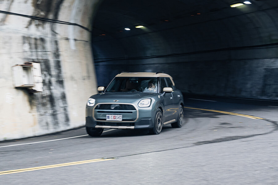 以拉力賽聲名大噪的Mini總得對操控試招,你說是吧?開著就來到鄉間道路,以170匹三缸渦輪配合輕油電的動力拖動1.5噸左右車身看似不甚起眼,面對日常需求恰巧夠用的動力一旦切換至Go-Kart模式,變速箱在檔位進退間亦多了積極催促駕駛的頓挫與補油拉轉,引擎轉速亦常保高檔狀態。Countryman C彎起來的感覺仍體現出重心集中在前軸周遭,這意味著此車依然有著相當聽話靈敏的車頭動向、同時車尾剛性亦能協助堅守路線,好讓我以頭過身就過之姿將油門踏板踩盡、早早便發揚高轉火力直奔彎角出口。懸吊壓縮初期有著乾脆俐落的路面回饋,在過彎施加壓力時依然會產生些微的側傾。不過即便在高速劈彎的狀態下,依然能感覺到內側輪胎、懸吊的接地狀況。因此除了車重在減速階段帶來的額外慣性、以及出彎面臨顛簸時免不了的扭力轉向外,平時顯得舒適愜意的乘坐感受,竟能在狹小山路裡有此表現與樂趣,實在已經超乎我上車前的期待。