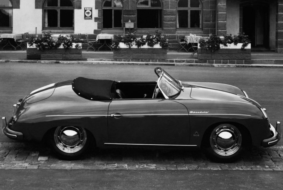 第一部Speedster誕生於1954年,當時美國跑車玩家盛行賽道日,保時捷代理商想要一部有優異賽道性能但價格不能過高的產品,於是出現了356 Speedster,低矮的前擋風玻璃可以快速拆除,車門的窗戶為組合式,活動軟篷體積縮至最小,然後車內只裝了兩張桶型賽車椅,這些都是為了將車重減到最低並符合假日參賽所需的手段(356 Speedster生產期為1954~1958年)。