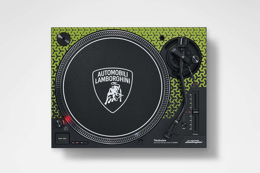 閣下也認為黑膠唱片比起數位音源更觸動人心嗎?那麼用類比方式聆聽Lamborghini V12聲浪肯定是最頂了吧?Lamborghini與松下旗下音響品牌Technics合作,推出帶有Lamborghini風格的黑膠唱盤SL-1200M7B。該唱盤以Technics自家的SL-1200MK7為基礎,機身表面有著許多Lamborghini招牌的Y字元素圖騰,並有紅、黃、綠等三種顏色。在防滑墊中央,則有著大大的Lamborghini logo,不經意地讓到你家到訪的貴客不知道這是台Lamboghini唱盤;在控制介面的右下角,也可以看到Lamborghini的品牌標誌。