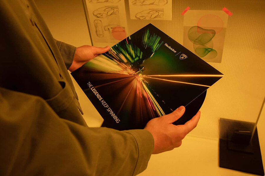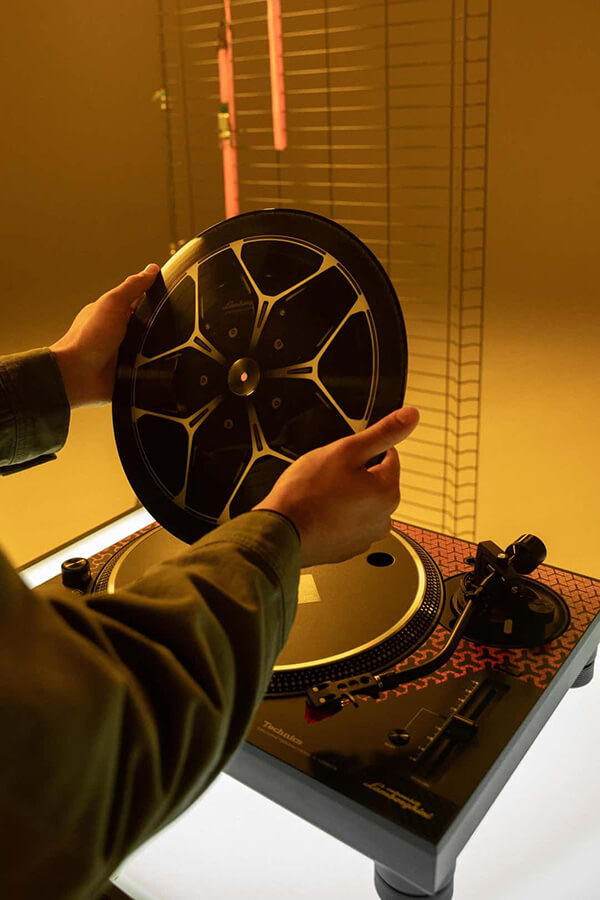 每台隨附在SL-1200M7B裡的黑膠唱片可能更受我們關注:該張唱片上壓有六輛不同Lamborghini的V12引擎聲響。你將會從早期的400GT型號開始聆賞,接著是Miura、Countach 25th Anniversary以及Diablo的6.0升V12咆哮輪番出籠,最後是以Murcielago與Revuelto的轟鳴聲圓滿落幕。唱片本身甚至還印有Revuelto輪圈圖案,播放這些”音樂”的同時還有視覺上的趣味。
