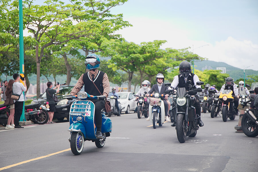 而DGR紳士路騎在台灣亦有超過十年的舉辦歷史,在重機逐漸普遍、以及地方政府的支持下,活動一年是辦得比一年要精采盛大。今年The Distinguished Gentleman’s Ride在台灣共有台北、台中、高雄、馬公等四處城市舉辦,小編所身在的台北場今年則以八里觀海大道上眺望淡水河出海口的Ton Up Café集結出發,沿著博物館路的林蔭進入西濱公路,來到林口下福市民活動中心活動會場。