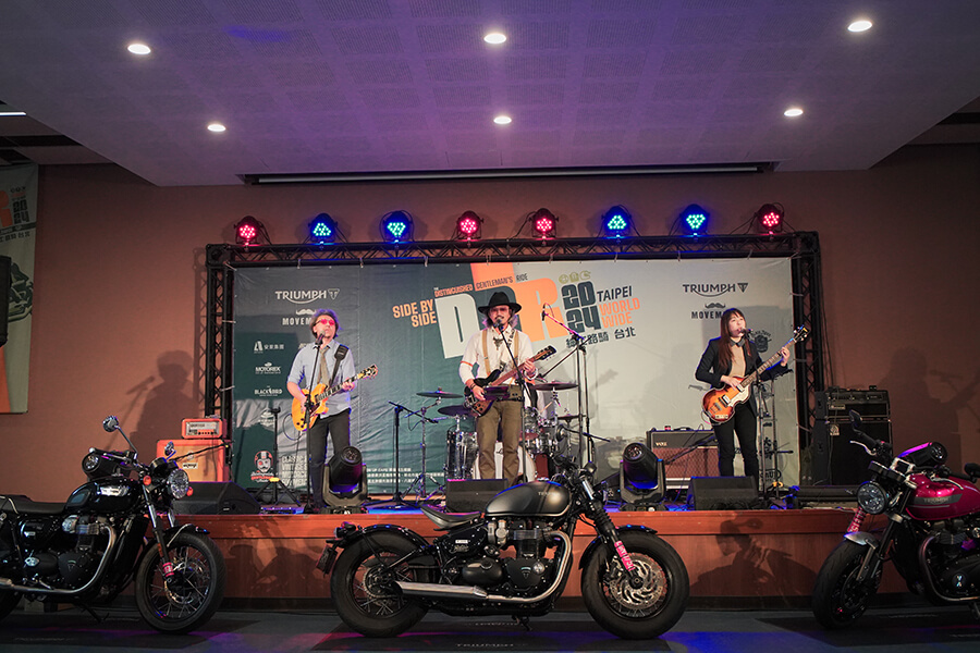 等車齡超過半世紀的經典凱旋共聚一堂。在後方展示著經典速克達品牌Lambretta的同時,主舞台前方所展示的最新款Triumph Speed Twin、Bobber以及T100,形成好一幅祖孫同堂的溫馨場景;舞台上更邀請樂團演出,趁著灰暗閃爍的燈光,讓現場好似60年代搖滾俱樂部現場。就連兩側的參展廠商亦與平時車聚迥異,除了精心規劃打鏢遊戲外,涵蓋內容更聚集了與紳士服裝、生活放式相關的元素,包含紳士皮帽、復古安全帽、訂製西裝、皮革油、咖啡等等。
