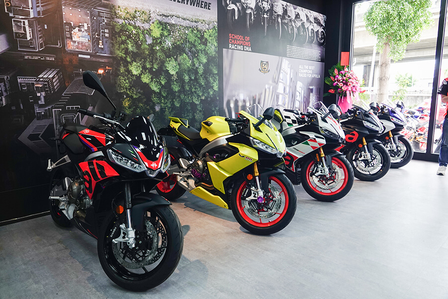 在開幕誌慶的同時,老闆名哥也表示即將推出開幕限時優惠,請大家敬請關注”DK MOTO”臉書粉絲專頁~至於在看過店內的Aprilia RSV4 / RSV4 1100 Factory / RS660 / Tuono 660 / SR GT 200、一旁還有一部稀有的Moto Guzzi V100 Mandello擺在一旁,115匹動力結合主動式空力系統的跨界定位實在令人相當好奇;而更令人期待的是現已啟動預購、等待車輛正式到港的小跑車RS457。據悉此車持續由摩托之星向原廠爭取更多配額與生產排程,他們自己也跟預購車主一樣急吶。不過三軍未發、糧草先行,摩托之星也表明了未來在六都陸續建立3S旗艦店據點的計畫,以期在未來有更多車友能放心加入義大力車主的行列,敬請期待~