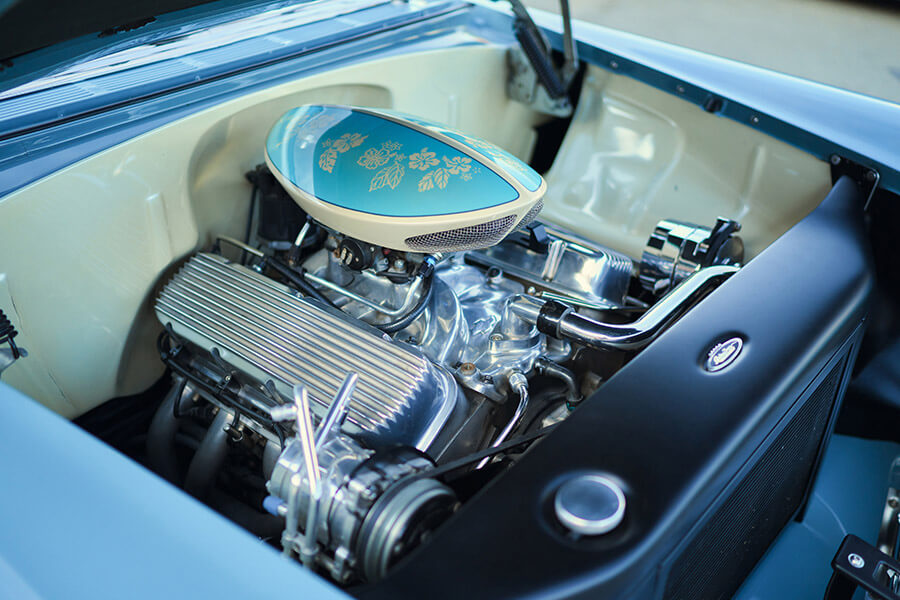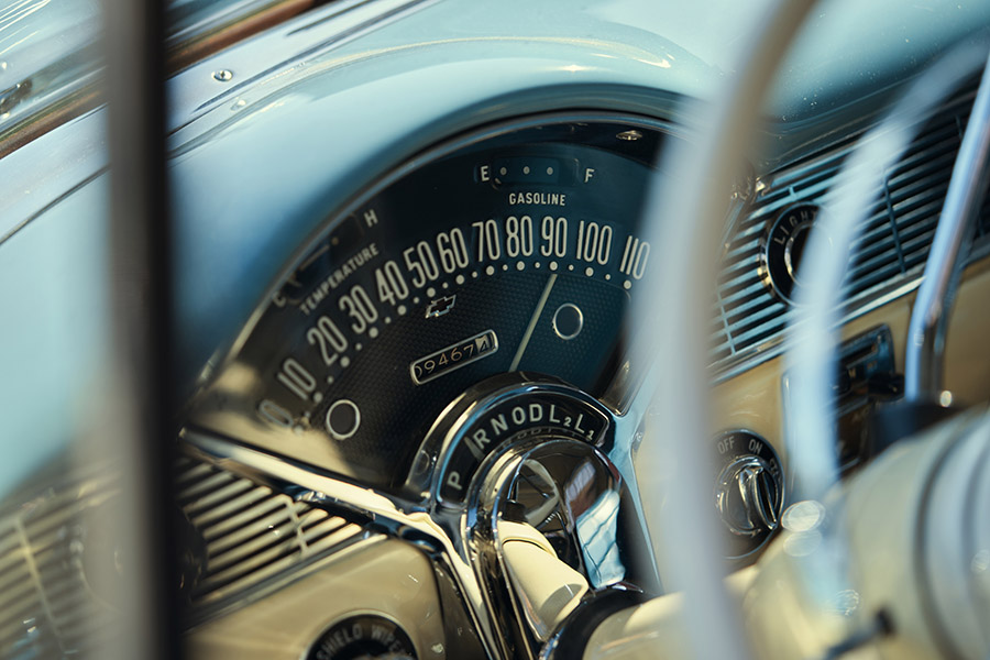 「這部車在1988至1998年間一直擺放在我家門前車道。」Henry說明道。他拜託了汽車和摩托車改裝商Cole Foster「幫它恢復性能,但你看看這番成果吧」。這部Bel-Air無可挑剔,引擎艙簡直巧奪天工令人神為之奪。他還催促我去車尾打開分割式尾門卸下一箱箱剪報,分享一下雪佛蘭老兵與新一代車迷神交的樂趣。