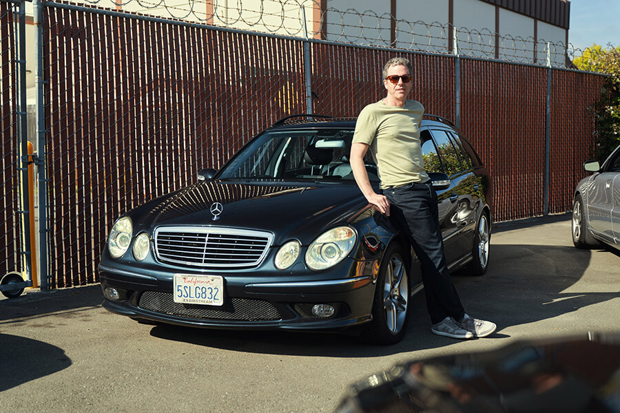 Sebastian也偏好大隱隱於市,他那部低調得來賞心悅目的原裝E55 AMG便是如假包換的低調高手。「我會開它去內華達山脈玩飛蠅釣,在後座過夜。」他說道:「它有82.9kgm扭力,我簡直崇拜這部車,每次進出車廂都會喜上眉梢。」這部E55的風味,與標榜外形囂張滿載混能、觸覺反饋等等技術的當代AMG大異其趣,所用車輪按現今標準來說簡直小到搞笑。可是前有V8派對,後有大量行李空間,豈不妙哉。