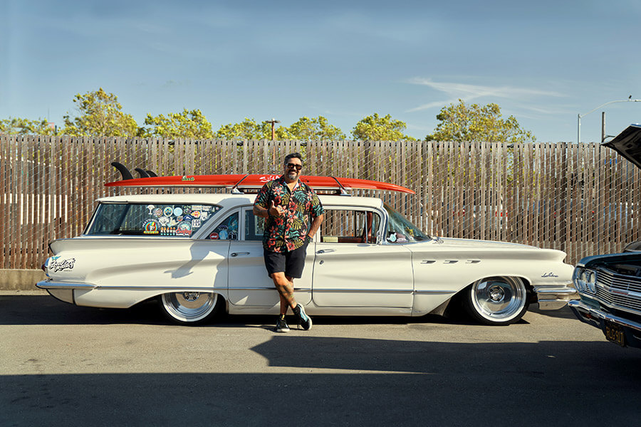 你若喜歡外向個性,應該會很喜歡Adam。這位身穿夏威夷恤握手有力的老兄,這天帶來了一部頭頂滑浪板,身長5.8m「家中車房幾乎放不下」的別克。他引以自豪的快樂之源,正是這部1960年LeSabre海灘巡洋艦。在此必須強調,經常有人誤把LeSabre當作《捉鬼敢死隊》的Ecto-1,其實片中所用的是凱迪拉克。不過你家附近若有大浪出現,你會找誰幫忙呢?