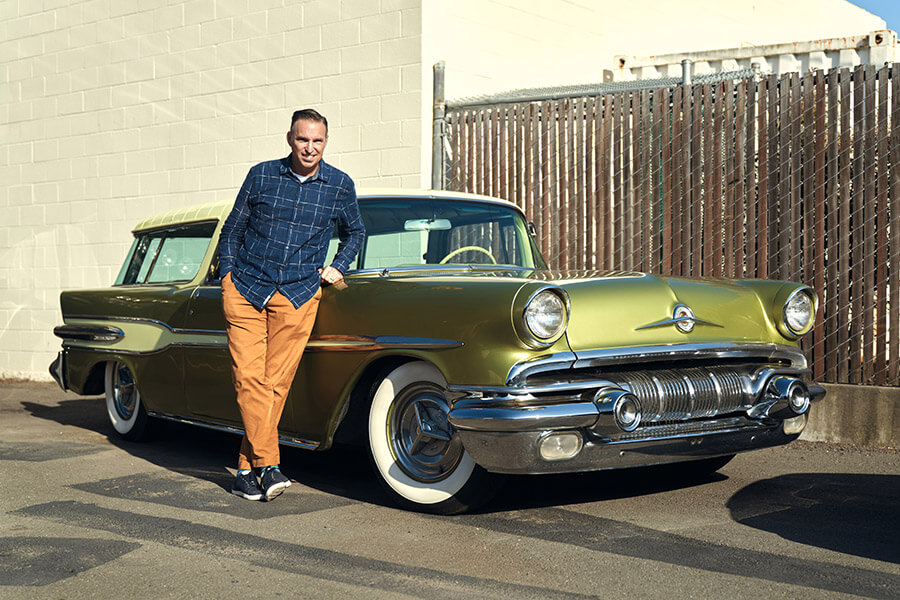 不過這次聚會上最合我眼緣的作品,還是Jay Ward的豌豆綠龐帝克Safari。Jay是對面馬路Pixar的創意特許經營事務總監,所以我問他這部個性如此出眾的雙門旅行車為何沒有在《汽車總動員》擔演一角。「買這部車時,我正在參與《料理鼠王》,但(汽車總動員)也有很多很cool的hot rod改裝車和大量令人回味的五零年代汽車元素。」Jay買下這部Safari時,車身的鏽蝕程度勝似廢鐵,適逢當時他的家庭正在開枝散葉,所以花了三年時間悉心翻新這部車。其間不時在eBay競投後備零件,並且參考了好些他形容為旅行車「網路」的秘聞。「這款旅行車當年僅僅生產了1,292部,就1950年代的通用汽車而言是個微不足道的數目。」