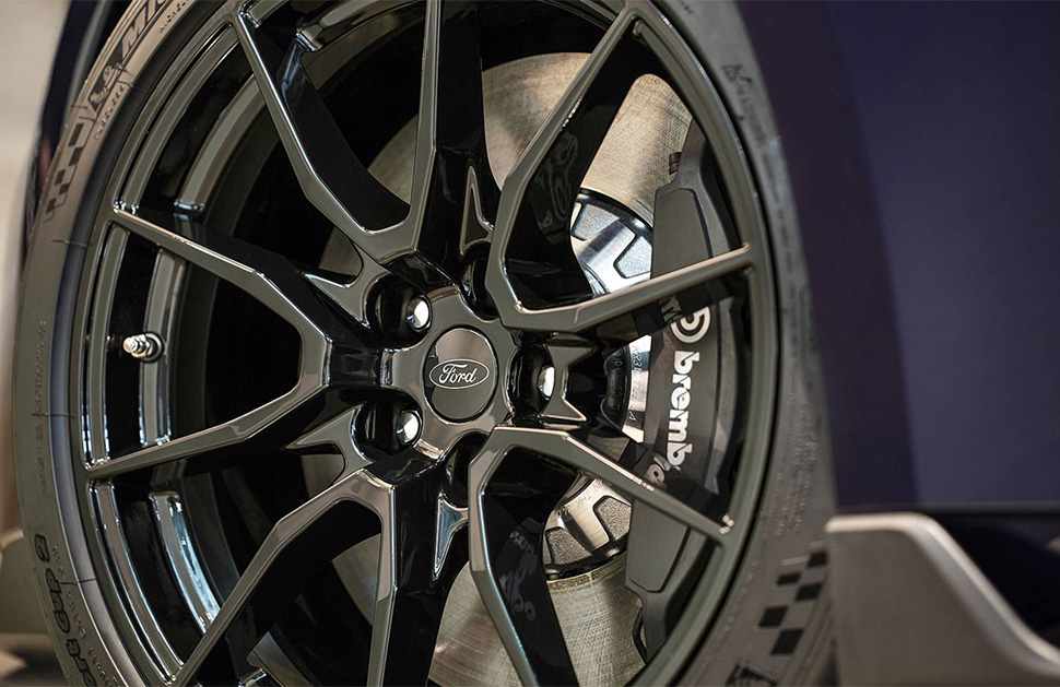 Ford為確保GT350能夠獲得更多的抓地力,用上專為Shelby設計的米其林Pilot Sport Cup 2輪胎 ,採用前295/35/19及後305/35/19全新鋁圈設計 ,煞車則是同樣的前Brembo六活塞和後Brembo四活塞卡鉗,並且可選配額外專用擾流套件,可大幅助於改善空氣力學。