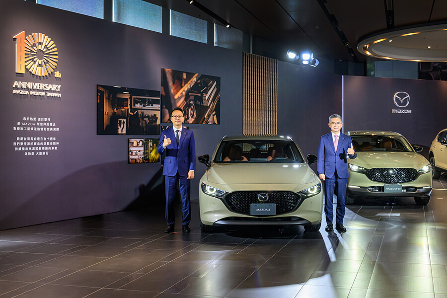 自 2014 年成立馬自達株式會社在台分公司,十年歷程台灣馬自達接軌全球步調,陸續導入多元豐富的產品陣容,實踐 MAZDA 期望透過「充滿活力的移動體驗」讓開著 MAZDA 的駕駛能身心活化的承諾,截至 2024 年 5 月,台灣馬自達新車銷售已累計近 18 萬輛,由衷感謝消費者對 MAZDA 品牌的高度認同與支持。在硬體設施方面,台灣馬自達也陸續完成 35 間展示據點的升級,提供消費者更尊榮且舒適的賞車體驗。展望未來,台灣馬自達將持續引進更多符合台灣市場需求的新世代車款與精進消費者體驗。我們期待與台灣的車迷朋友們共同迎接下一個更輝煌的十年。