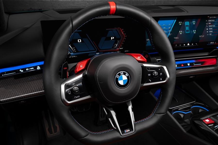 如此大的動力輸出,就如同現今M家族產品的主流趨勢,這次七代M5採用的依然是四驅系統,而且就如同上一代M5可以透過設定選擇將大部分動力或甚至全部動力傳送至後輪。至於M模式的個人化選項也依舊維持著,還有多段式動態穩定控制、後輪轉向、三模式自適應懸吊、三種換檔速度、多種轉向輔助力道和煞車踏板靈敏度,這些都可以在M性能介面的個人設定中進行挑選,一旦確認了自己屬意的設定,你可以儲存在方向盤上的M1或M2紅色按鈕中,這些設計……好像跟過去沒啥不同,不過在鞍座iDrive控制鈕後面倒是多了一顆M Hybrid按鈕,這當然是因應油電複合動力所附加的功能。