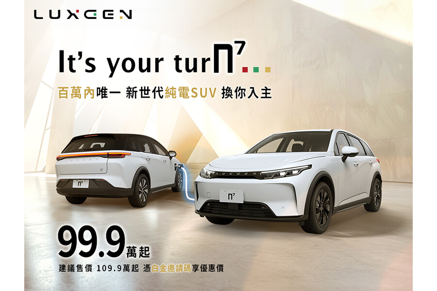 同時截至6月底,LuxClub尊榮會員已累積突破三萬人次,大家熱烈的支持也使得試駕預約名額爆滿,造成尊榮會員們有可能來不及在當月完成試駕,LUXGEN為回應大家的回饋,將滿電特仕版的下訂期限延至7/31,並盡可能的加開試駕場次,希望讓大家都能在選購前對n⁷有美好的體驗。為感謝諸多車主支持新世代LUXGEN 朝新能源品牌轉型、並呼應政府近期所提出之「形塑淨零永續綠生活」的台灣願景,LUXGEN也正式宣布:7月起憑車主專屬的白金邀請碼入主建議售價109.9萬的5人純粹版回饋價只要99.9萬,滿電特仕版充電回饋也從原本的20%加碼為30%。未來,LUXGEN的新能源產品價格亦將依市場策略、原物料成本變化等因素隨時動態調整。
