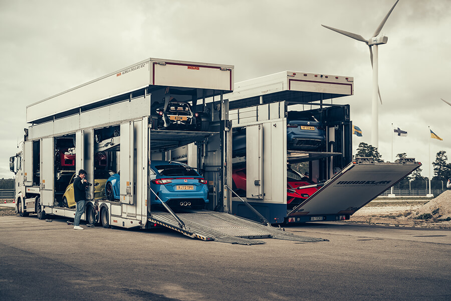 麥拉倫Artura、電動方程式賽車和Polestar 2分頭從沃京、倫敦和古騰堡送抵目的地,加起來的碳當量有5.23tCO2e。其餘十二位參賽者全數由兩部Scania柴油運輸車送往Dunsfold(最初打算用電動貨車運送,沒有這樣做的原因且留待第XX頁交代),經英法海底隧道一直駛往瑞典奧斯卡港市,再搭乘汽車渡輪抵達維斯比,碳當量因此增加了7.9tCO2e。